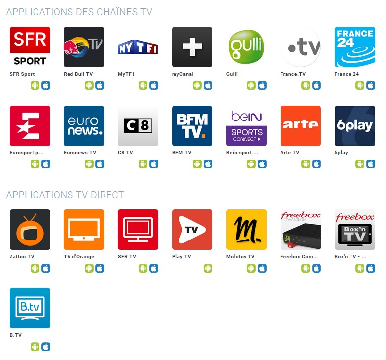 Enfin, le menu Sur mobile donne accès aux applications de TV sur smartphones et tablettes iOS et Android :