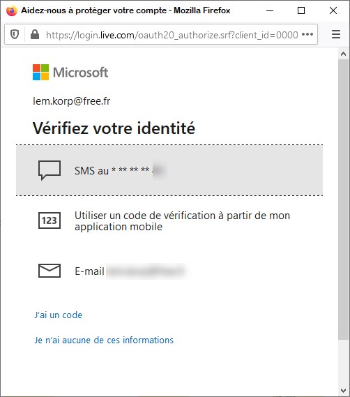Cliquez sur Suivant. Votre avatar et votre adresse mail s’affichent. Cliquez sur Vérifier pour vérifier votre identité. Plusieurs techniques de vérification vous sont proposées :