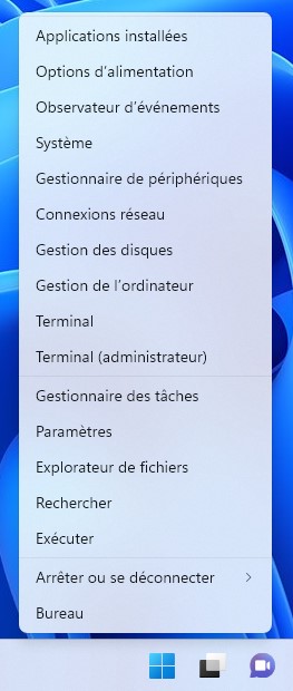 Cliquez du bouton droit sur le bouton Démarrer ou appuyez simultanément sur les touches Windows et X. Un menu donnant accès aux outils d’administration apparaît :