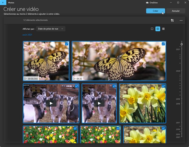 Choisissez plusieurs photos et/ou vidéos dans la galerie, puis cliquez sur Créer :