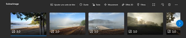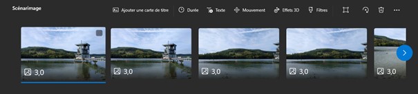 Les images sont insérées dans le scénarimage. Par défaut, leur durée d’affichage est de 3 secondes :