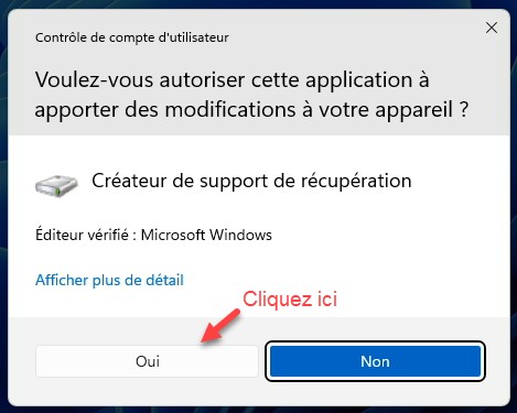 Le contrôle de compte d’utilisateur se manifeste. Cliquez sur Oui :