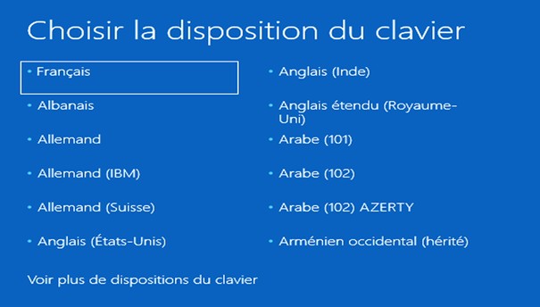 Au bout de quelques secondes, un écran bleu vous demande de choisir la disposition du clavier :