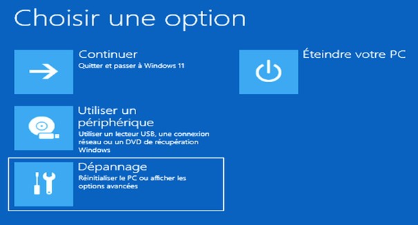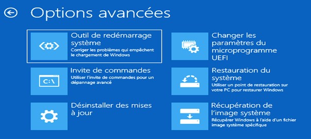 Un nouvel écran s’affiche. Il ne vous reste plus qu’à choisir la fonction appropriée pour réparer votre ordinateur :