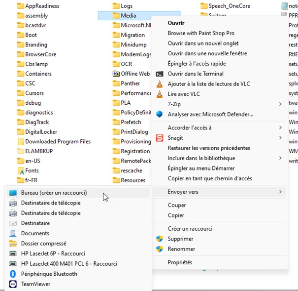 - Pointez Envoyer vers, puis cliquez sur Bureau (créer un raccourci):