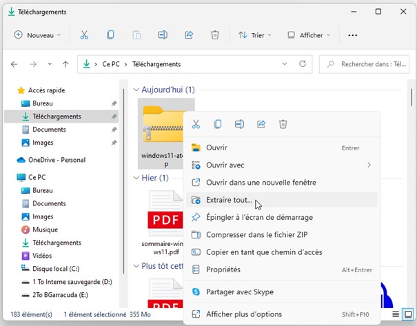 Vous venez de télécharger ou de recevoir un fichier d’extension ZIP par mail ? Et vous ne savez pas quoi en faire ? Pas de panique ! Il s’agit d’un fichier « zippé ». Pour pouvoir vous en servir, vous devez le déziper … et Windows 11 est équipé pour cela.