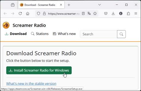 Le web regorge de radios FM thématiques en tous genres. Dans cette section, je vais vous montrer comment accéder facilement à vos radios préférées en utilisant le freeware Screamer Radio. Commencez par vous rendre sur la page http://www.screamer-radio.com/download/. Téléchargez l’application portable Screamer Radio en cliquant sur Install Screamer radio for Windows.