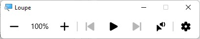 Vous pouvez également zoomer certains éléments de l’écran. Appuyez simultanément sur les touches Windows et +. La boîte de dialogue Loupe s’affiche en avant-plan :