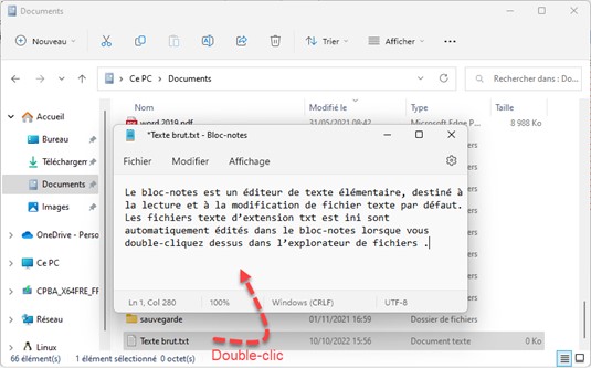Le bloc-notes est un éditeur de texte élémentaire, destiné à la lecture et à la modification de fichier texte par défaut. Les fichiers texte d’extension txt est ini sont automatiquement édités dans le bloc-notes lorsque vous double-cliquez dessus dans l’explorateur de fichiers .