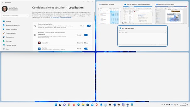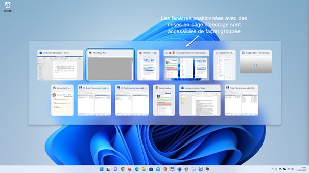 Enfin, pour terminer, sachez que le raccourci clavier Alt + Tabulation donne désormais accès aux fenêtres ouvertes dans une interface fenêtrée, et que les fenêtres positionnées avec des mises en page d’ancrage sont accessibles de façon groupée :