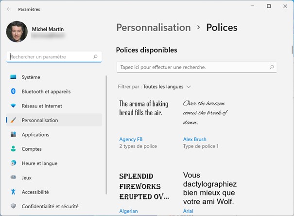 Repérez la police que vous voulez utiliser et notez son nom. Ici, pour bien noter la différence, nous allons utiliser la police Algerian.