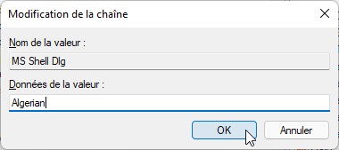 La clé MS Shell Dlg définit la police système utilisée par Windows 11 dans les boîtes de dialogue :