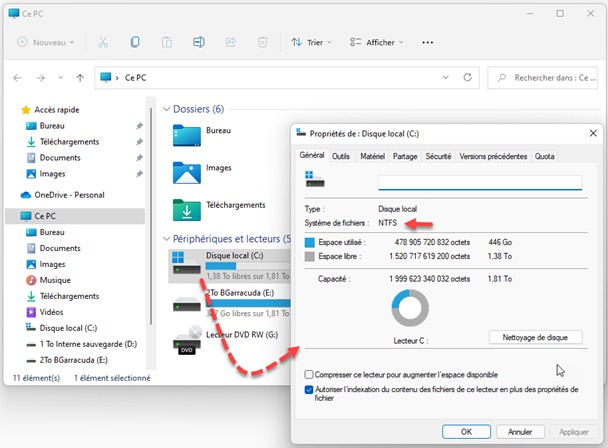 Si vous avez plusieurs unités de masse, vérifiez leur formatage en utilisant la même méthode. Si vous avez au moins un disque formaté en NTFS, vous pouvez poursuivre la lecture. Ce qui va être dit concerne tous les disques (SSD et disques durs) formatés en NTFS.