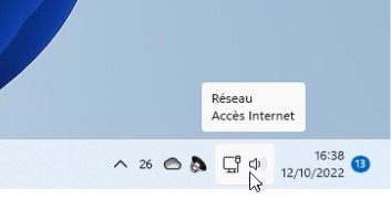 Si votre ordinateur utilise une connexion Ethernet, vous n’avez rien à faire : la connexion est automatique. Pointez l’icône Réseau, dans la partie droite de la barre des tâches. Une info bulle signale que l’ordinateur a accès au réseau local et à Internet :
