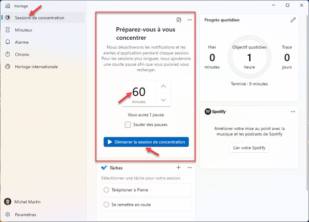 Avec les notifications des applications qui apparaissent tout au long de la journée, il est facile de se laisser distraire. Les sessions de concentration de Windows 11 vous encouragent à réserver du temps pour une période qui nécessite une concentration profonde et ininterrompue.