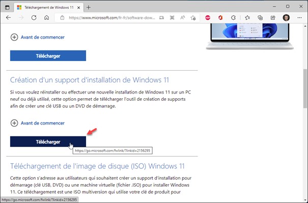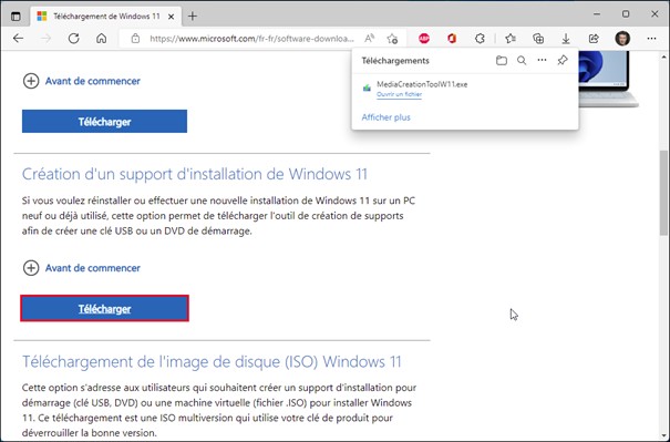 Cette action provoque le téléchargement de l’outil MediaCreationToolW11.exe :
