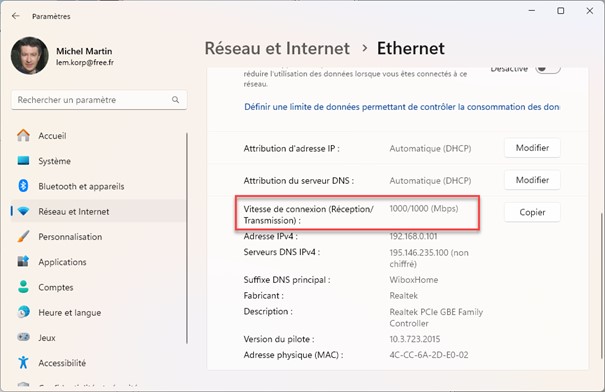 Vous voulez connaître la vitesse de connexion de votre carte réseau Ethernet ou Wi-Fi ?