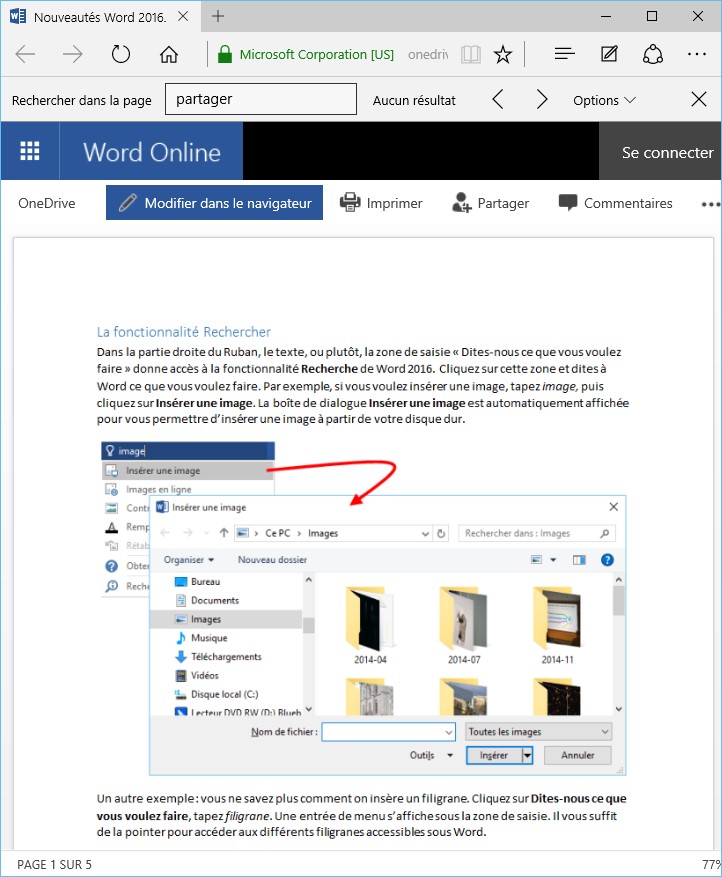 Si certains des coéditeurs possèdent Office 2016, ils peuvent également éditer le document partagé dans Word 2016 en cliquant sur OUVRIR DANS WORD.