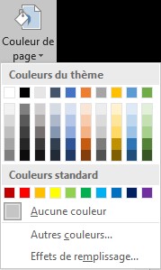 Pour appliquer une couleur, un dégradé ou une texture à l’arrière-plan d’un document, basculez en mode Page. Sélectionnez l’onglet Création dans le ruban, puis cliquez sur l’icône Couleur de page, dans le groupe Arrière-plan de la page.