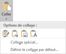 Si vous cliquez sur la flèche située sous l’icône Coller, vous pouvez accéder à des fonctionnalités de mise en forme évoluées. Cliquez sur :