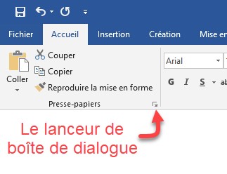 Les applications de la suite Office ont accès à un presse-papiers multiple contenant 24 entrées. Il est donc possible de couper ou de copier jusqu’à 24 éléments différents et de les coller comme bon vous semble dans le document. Pour accéder à cette fonctionnalité, vous devez afficher le volet Presse-papiers en cliquant sur le lanceur de boîte de dialogue :