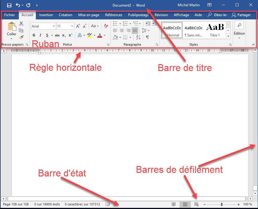 Dans la partie supérieure de la fenêtre, le ruban donne accès à toutes les commandes de Word.