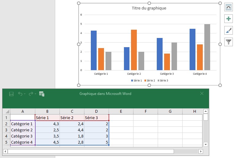Sélectionnez l’un des modèles proposés puis cliquez sur OK. Deux objets sont maintenant affichés sur l’écran : une feuille de calcul et un graphique.