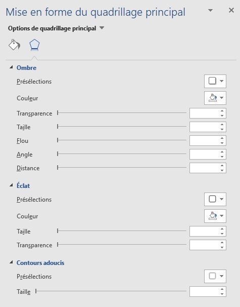 Vous pouvez accéder à d’autres paramètres en double-cliquant sur le graphique. Cette action provoque l’affichage d’un volet complémentaire, dans la partie droite de la fenêtre de Word. Supposons que vous vouliez personnaliser le quadrillage du graphique. Cliquez sur le quadrillage. Le volet droit laisse maintenant apparaître des réglages concernant le quadrillage principal du graphique.