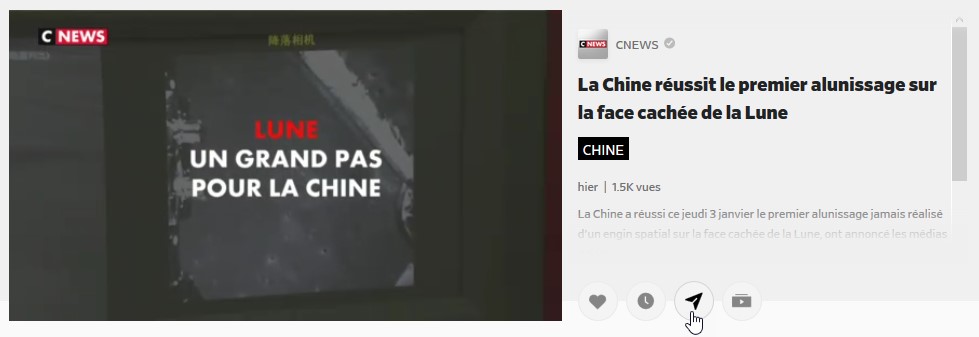 Nous sélectionnons une vidéo puis nous affichons son code d’intégration en cliquant sur l’icône de partage :