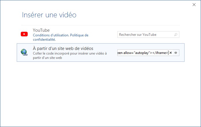 Insertion d’une vidéo à partir d’un autre site