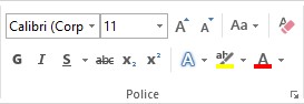 Après avoir sélectionné un bloc de texte quelconque, vous pouvez utiliser le groupe Police, sous l’onglet Accueil du ruban, pour définir la police, les attributs et les effets du texte.