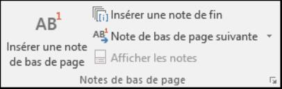 Pour insérer une note de bas de page ou de fin de document, placez le pointeur juste après le mot concerné, sélectionnez l’onglet Références dans le ruban, puis cliquez sur l’icône Insérer une note de bas de page ou Insérer une note de fin dans le groupe Notes de bas de page.